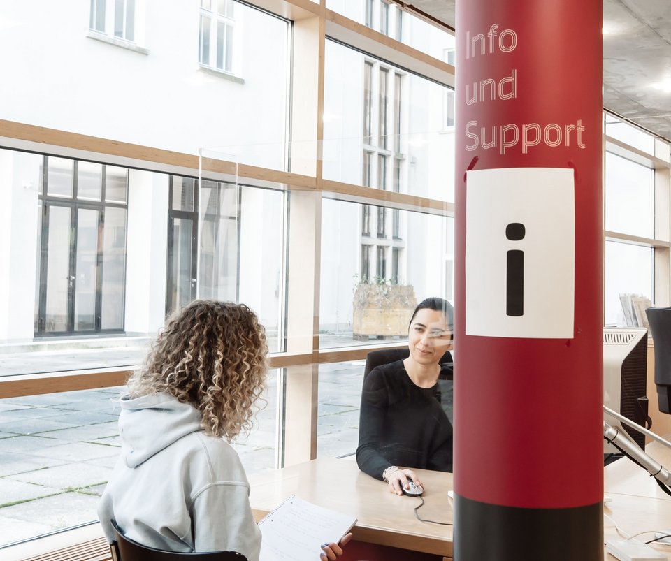 The Info and Support Desk Team will answer your questions and help you with issues around the library as well as IT-Services of the university.