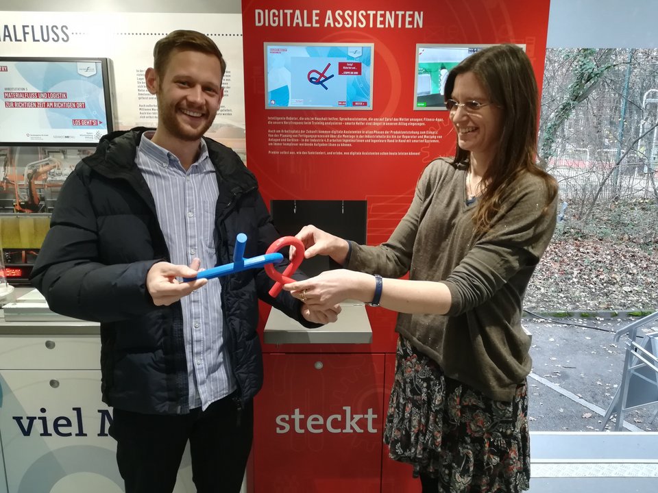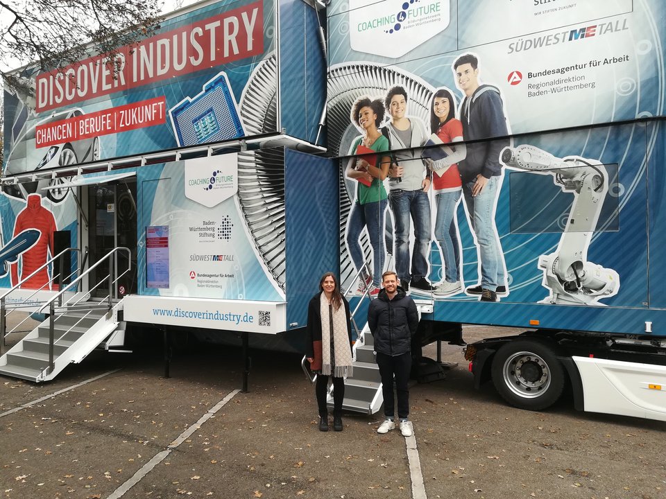 Since autumn 2019, our assembly planning has been part of the Discover Industry Truck, which drives to schools in Baden-Württemberg to get pupils interested in the MINT sector. In the dismantled truck, the working world of MINT professions is shown on 100m2 exhibition space. In the converted station on the subject of digital assistants, the pupils solve a nail puzzle in a race against the computer.