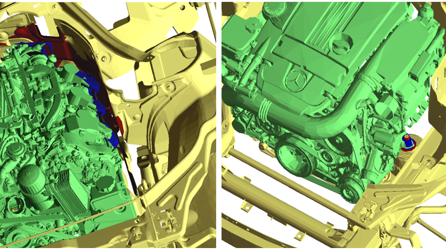 An important aspect of the Digital MockUp is to check that the components do not collide with each other, i.e. that they do not occupy the same installation space. The collisions between components that occur frequently in practice sometimes show the engineers relevant errors that require a design modification of the components. However, the majority are irrelevant for the engineers. A frequent example are collisions involving screws, bolts or clips. Their task is to attach components to each other, and the resulting conflicts are intentional.