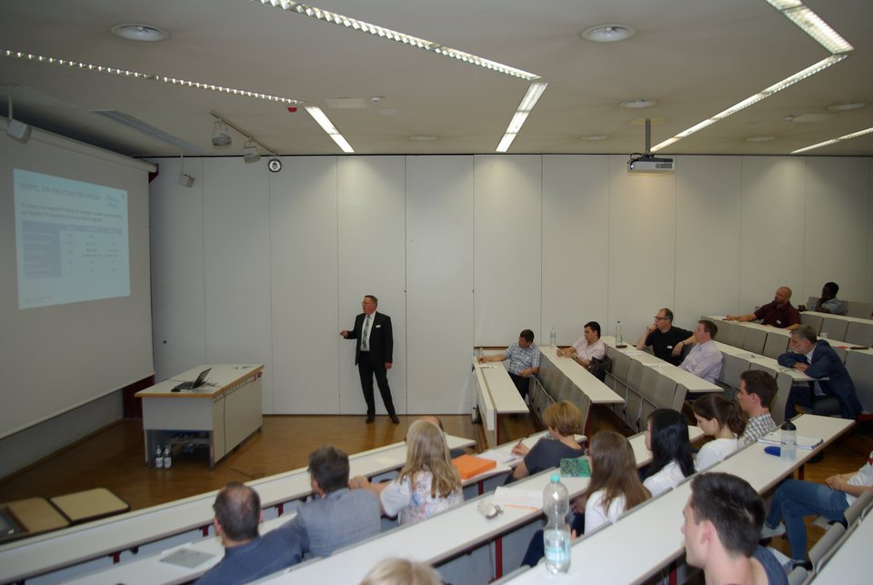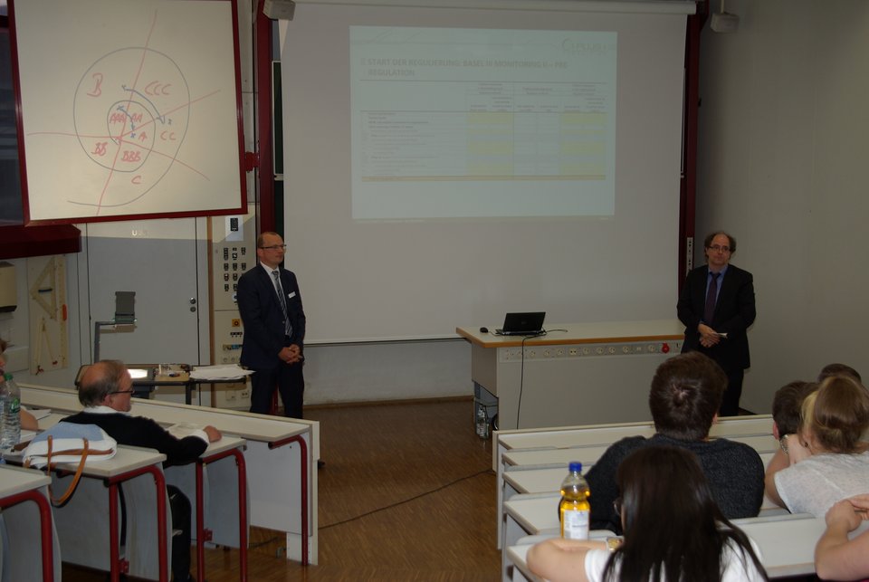 Our Finance & Insurance workshop takes place every two years at the Hochschule für Technik. For this purpose, speakers from banks and insurance companies are invited to give lectures on their activities. In addition to the students of the specialization "Finance and Insurance Mathematics", the workshop always attracts numerous external audiences from banks, insurance and consulting companies in the Stuttgart area to the university. >>Program overview Workshop 2018