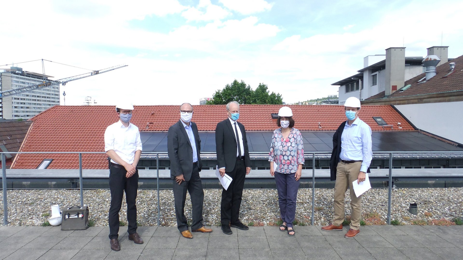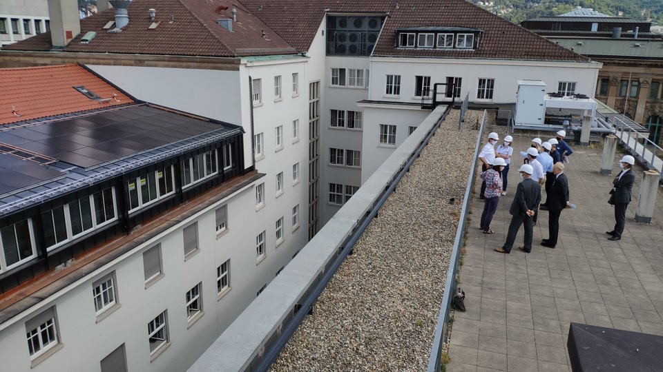 Their visit gave State Secretary Splett and Head of Office Steinbach a comprehensive impression of the modern refrigeration system on the roof of the HFT Stuttgart.