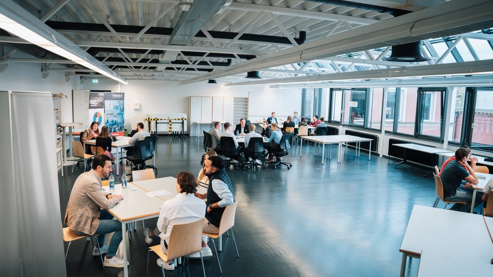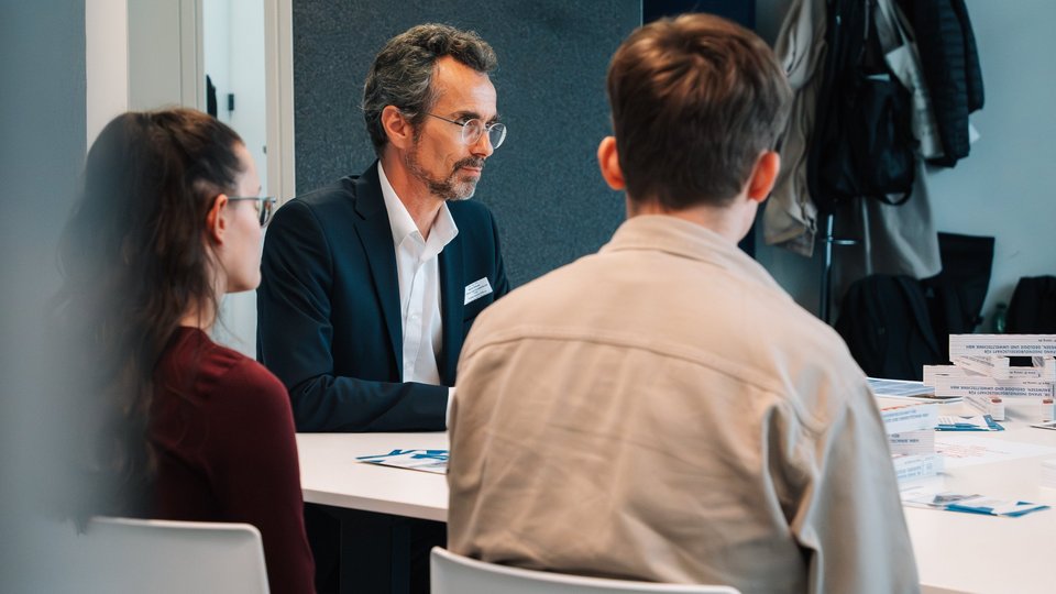 Business speed dating sessions took place before the scholarship ceremony, giving the sponsors the opportunity to get to know the scholarship holders personally. In short conversations, both sides were able to make valuable contacts and exchange ideas about common interests and future prospects. This format provided an ideal platform for networking and building long-term partnerships between companies and students. At the get-together in the auditorium, the discussions that began in the previous speed dating session were continued.