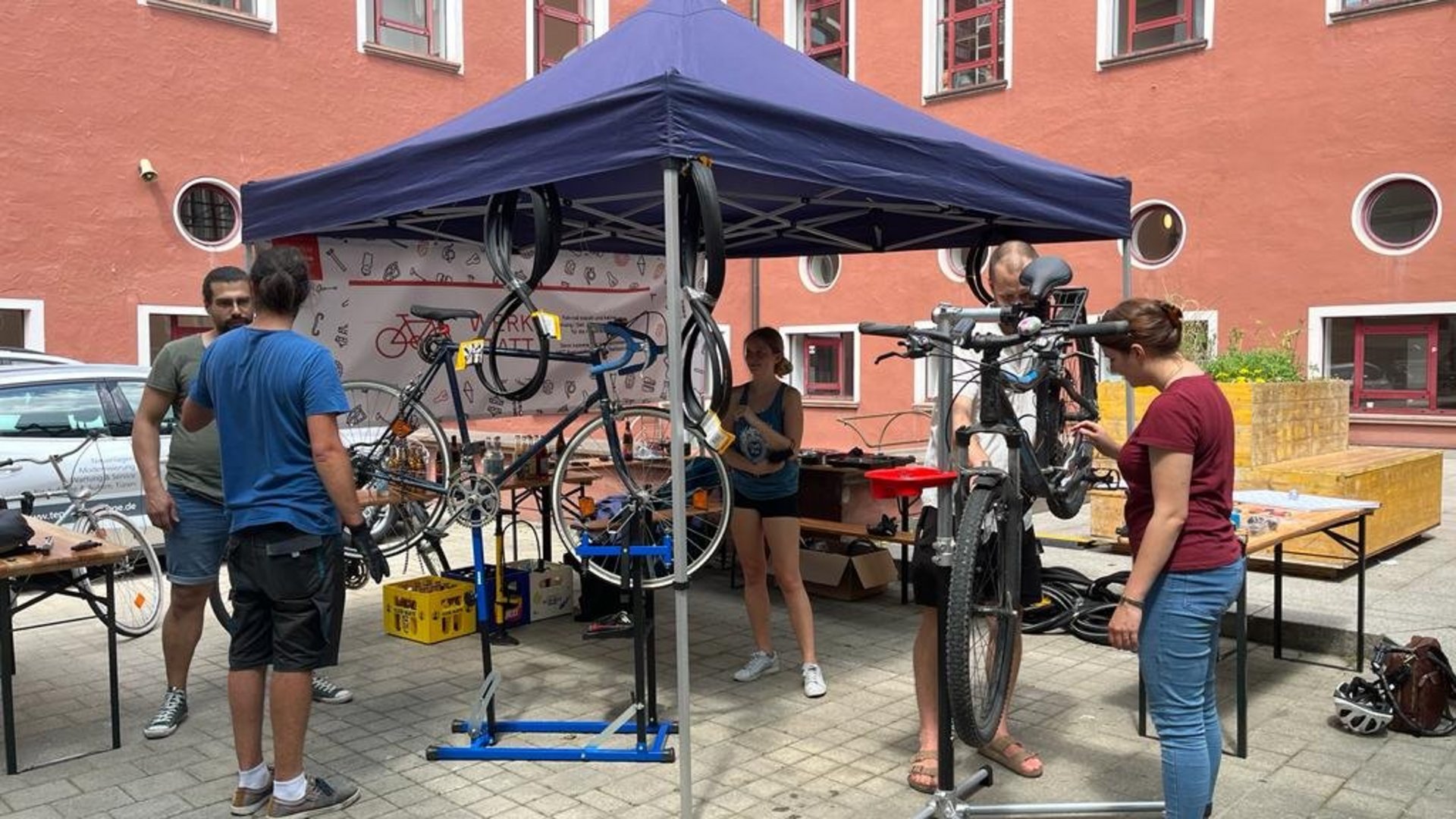 Who hasn't experienced it: the bike sits in the corner for weeks because the tire is flat or the gear shift is broken. The makers of the HFT bike workshop offer their help for the second time on September 22 from 1:00 p.m. to 6:00 p.m., only the required spare parts are paid for. All interested parties are cordially invited to visit the pop-up action in the inner courtyard between Building 1 and 3 together with their bicycle!
