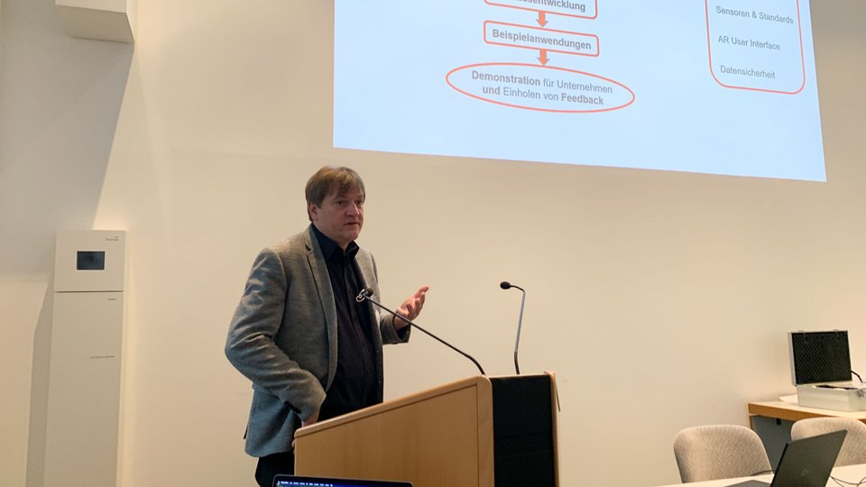 Subsequently, the HFT researchers from SensAR project introduced the respective topics of the SensAR subprojects with their short presentations. The speakers were supported by the project team, which was represented by a total of six professors and five staff members.