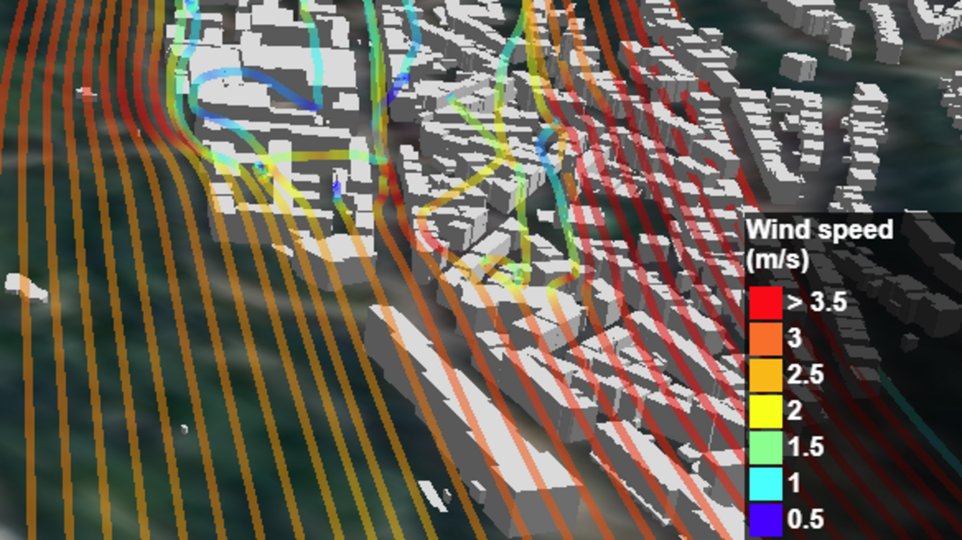 Audience questions regarding the extent to which dynamic wind simulations and the demands from sustainable mobility can already be taken into account in the simulation environment illustrate the depth of the examination of the topic. Prof. Coors was able to confirm the fundamental possibility of dynamic simulations, i.e. with expected measured values over a period of time. Limitations still arise due to the high computing power required for this. He referred to his team's experience with the calculation of wind potentials at the neighborhood level in steady-state mode (state at a point in time) and at the same time drew attention to the work of his colleague Ursula Voß, who is moving in the direction of dynamic simulations with her approaches and is already advancing this, among other things, through final theses. The implementation of road networks has also already been tested; with regard to knowledge gains for sustainable mobility offers, reference was made to the research in the corresponding iCity field of action Sustainable Mobility.