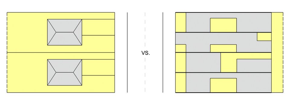 The objective and further contribution of the research project is a new building typlogy, which is referred to here as a ‘compact courtyard house’. On the way to a sustainable urbanity of the future, it is no longer sufficient to technically optimise common solutions, but increasingly requires the systematic and interdisciplinary development of new and very efficient building types in combination with urban structures explicitly developed for this purpose.