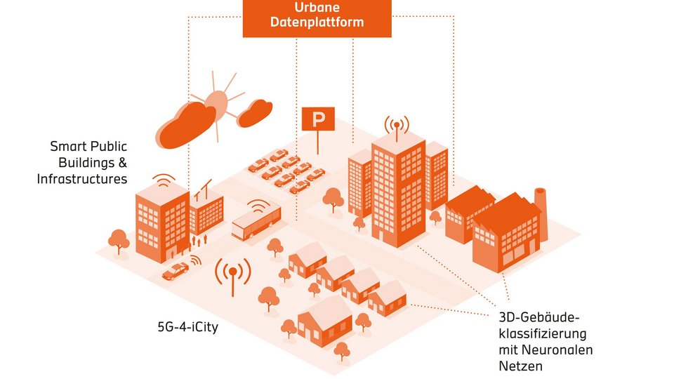 Urban data ranges from geospatial data for environment and construction to geometry data of buildings and information from the Internet of Things. How can a city's heterogeneous data sets be made available in a uniform manner via open interfaces and standards? Previous communication networks for data transmission are currently being expanded by new radio technologies such as 5G. What potential do these technologies have for use in buildings and cities? The increasing volume of data also requires automated processing to make the data valuable. How can new methods such as deep learning contribute to this? Finally yet importantly, how can data collected in the city and its buildings contribute to a better use of public resources, for example via new services for citizens?