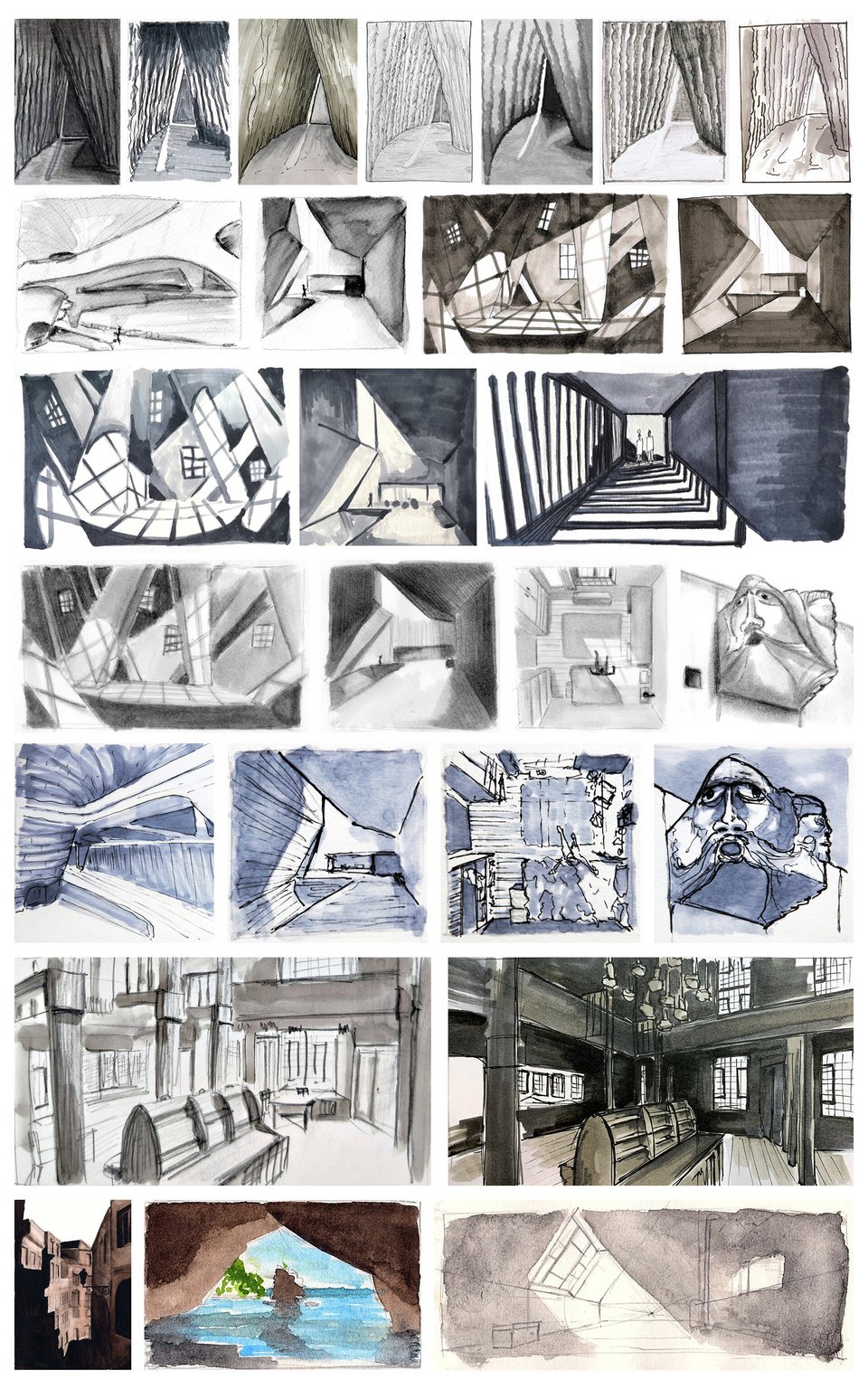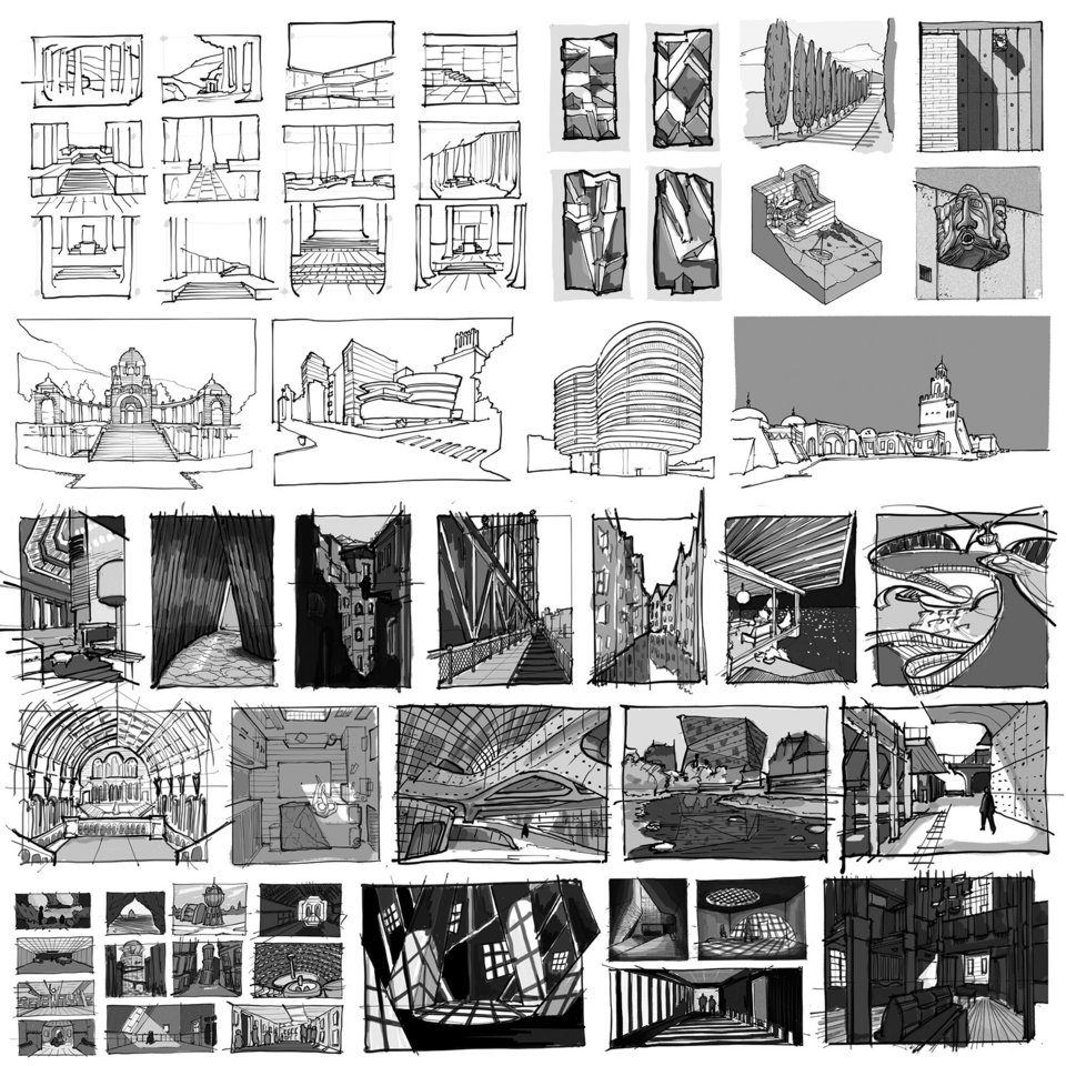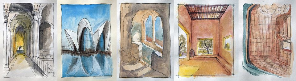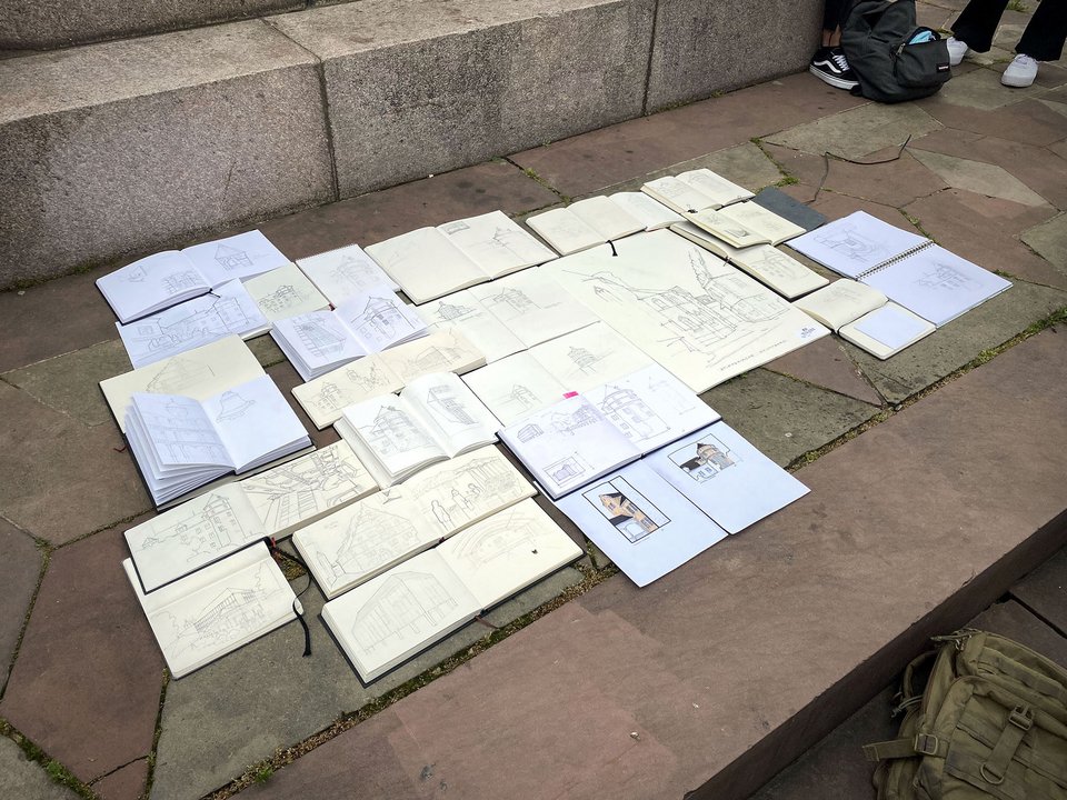 The exercises in the third online semester were devoted to different topics and aspects of spatial drawing. Special attention was given to architectural drawing as "speed sketching", i.e. sketching quickly with a time limit, and to tonal representation with different media. Thanks to low incidence numbers, two events in presence were scheduled at the end of the semester in the Weissenhofsiedlung and on Schillerplatz.
