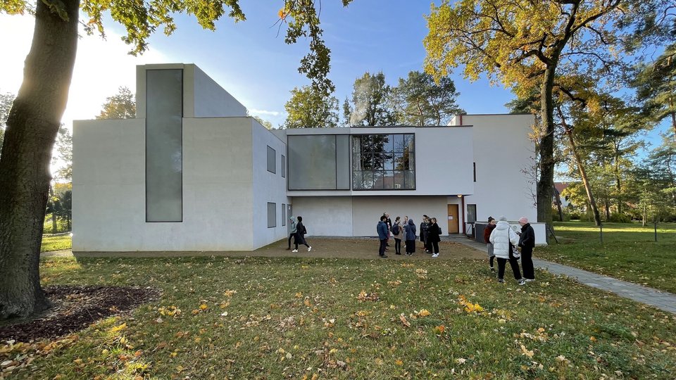 They started chronologically in Weimar. A student from Bauhaus-University gave us a guided tour to the Gropius Room as part of a "Bauhaus Walk." After that, a visit to the Bauhaus-Museum in Weimar was on the agenda, followed by a guided tour of the Bauhaus building in Dessau. On the following day, the Masters' Houses and the new Bauhaus-Museum in Dessau were on the agenda until the return trip to Stuttgart.