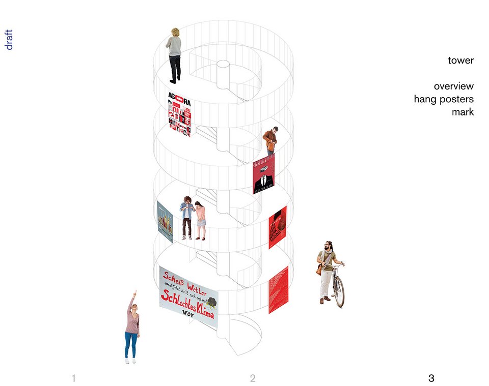The practical work presents a personal proposal to create a place in the city for the new subpolitical actors and make them visible in public. Only then can work on a small scale be recognized and strengthened as an important part of political discourse. It must no longer be about managing the structures of the present, but about allowing something new - seeking, researching, speculating, and dreaming of a better future.