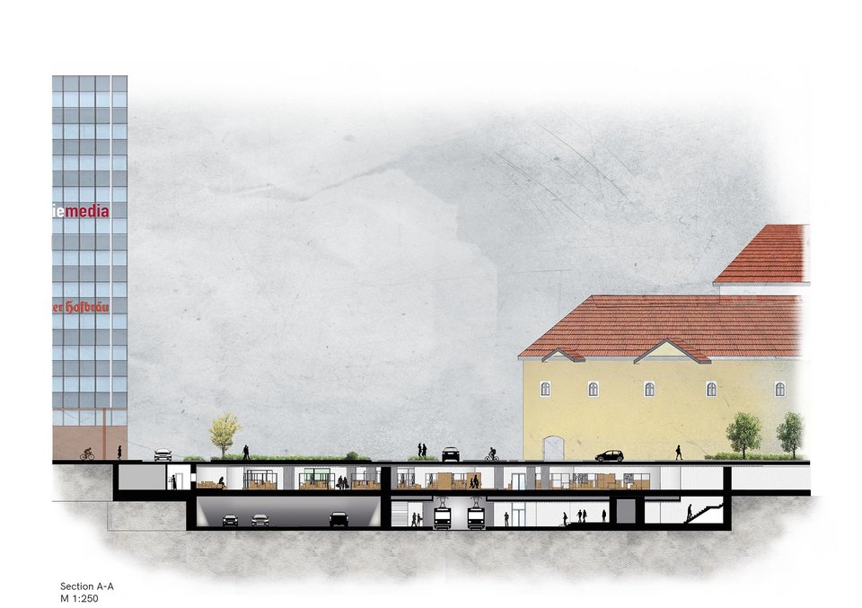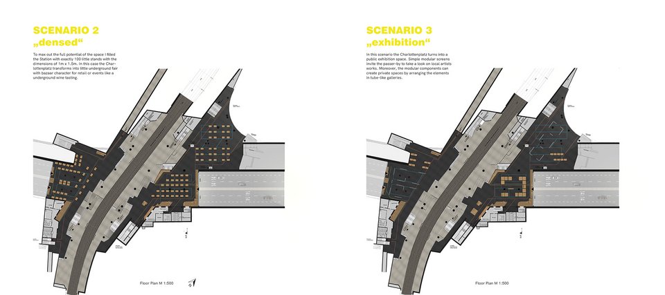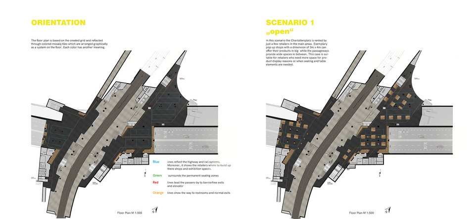 The metro station Charlottenplatz will be used as an example to show how making the systems visible and including the environment can produce new functions and create an urban hub for encounter and communication.