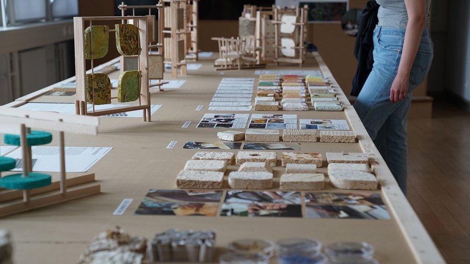 In Central Europe, people are spending an average of 90 per cent of their time indoors. Therefore it is crucial to use natural and healthy materials that do not contain or emit harmful chemicals. To this end, we are investigating mycelium, the underground "root system" of fungi: How can prefabricated mycelium panels be processed, refined and used as surfaces in furniture design?