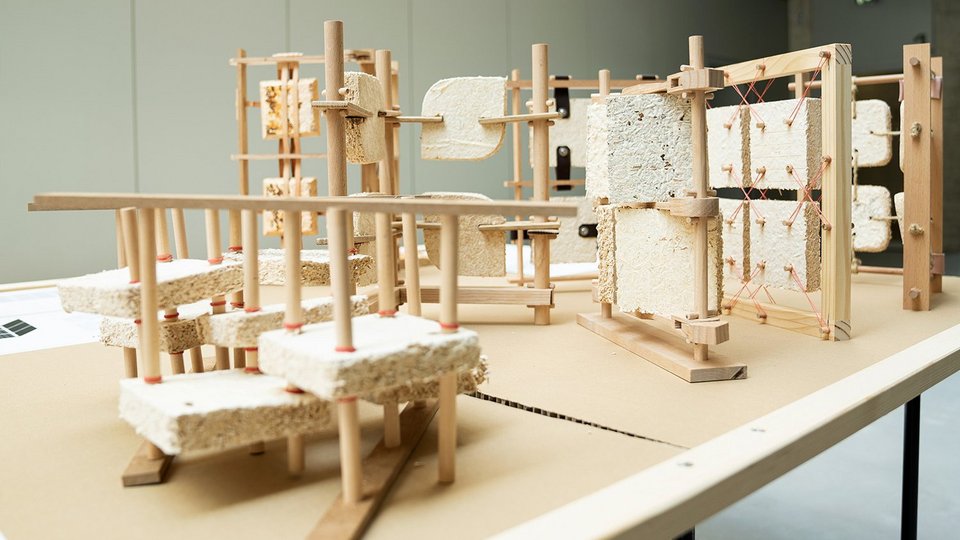 "Design for disassembly" - connections should be free of glue, chemicals and fitting. Monomaterial wood joints and hinges were developed.