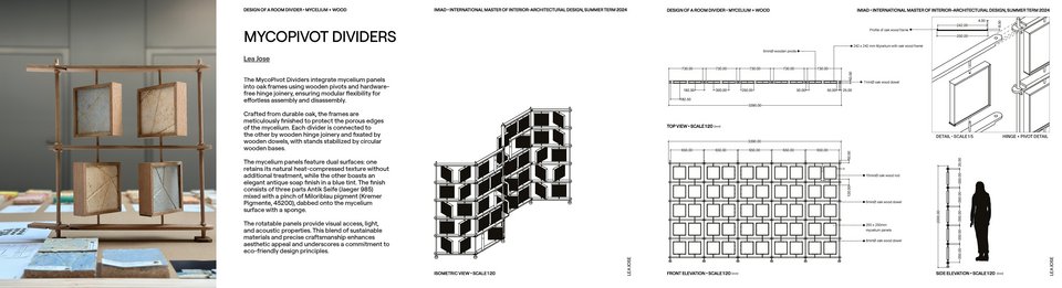 Based on this, free-standing room dividers were designed using mycelium as the surface and wood for the construction.
