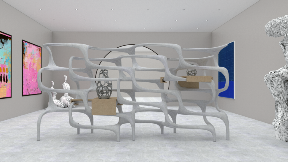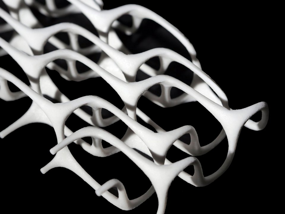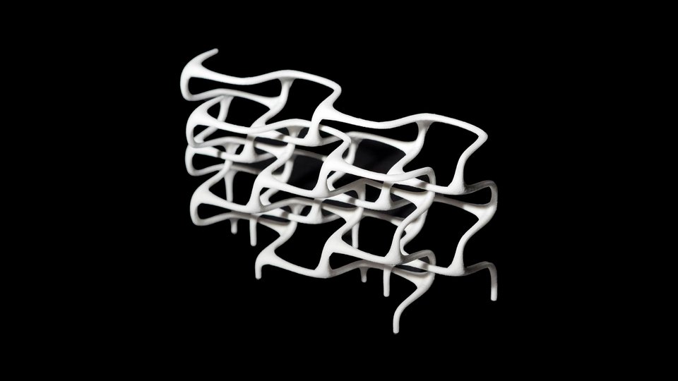 The student Burcu Göcen designed a filigree room divider that demonstrates a special potential of additive manufacturing: With minimal use of materials, the room divider "Synapsis" consists of two 3d-printed components that are irreversibly intertwined, but do not touch each other. She drew her inspiration from genetics: the "crossing-over" of corresponding sections of two homologous chromosomes results in the recombination of genetic information.