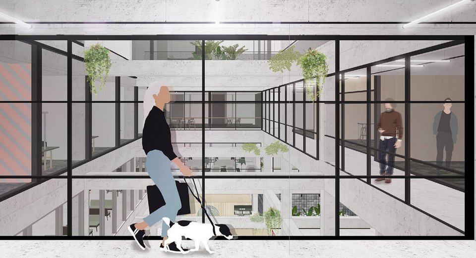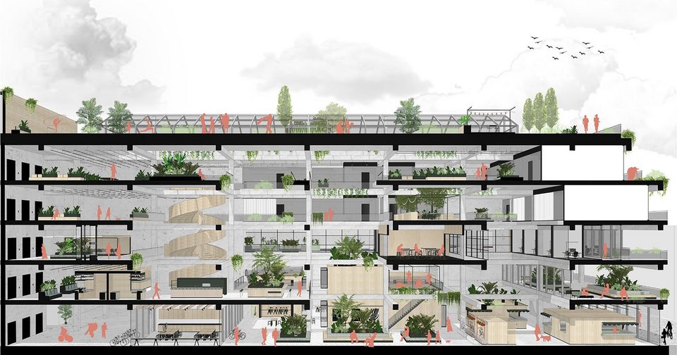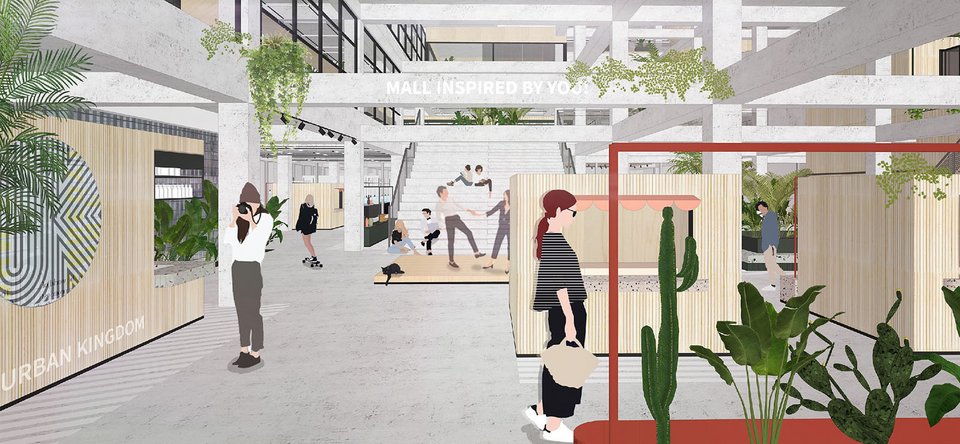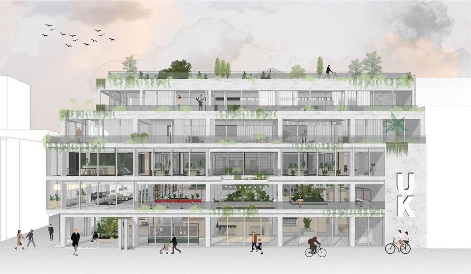 The city center is the hub of our society. Public spaces form the basic framework of our cities. They create spaces to stay, to be active and to meet, thus fulfilling numerous functions for society and the neighborhoods. They are cultural and political places. They can be identity-forming and shape the character and image of a city. For a long time, the inner city was a place of action, the urban market and its engine. This is where people were meeting, working and living. But in recent years, a homogenization of functions has occured in city centers. Large shopping malls, retail chains, traffic and business centers have displaced the varied and small-scale use. The rise of online-retail is another factor contributing to downtown desolation. At the same time, the diversity of social groups and milieus is greater than ever and the city is challenged to come up to its crucial role as a meeting and living space. The "Urban Kingdom" examines their current needs and tries to integrate numerous daily functions in the structural design of a department store in downtown Stuttgart by exclusively adding recycled, natural or sustainable materials.