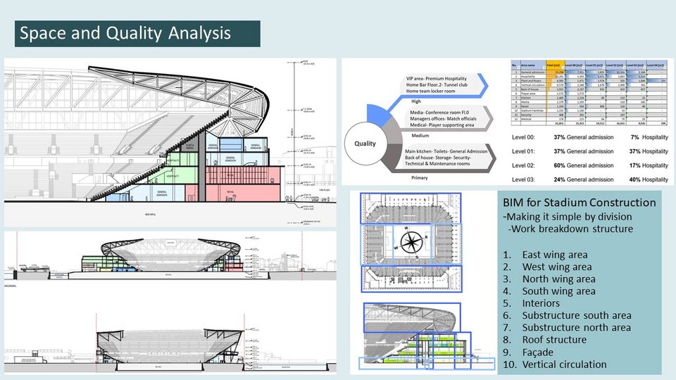 A holistic analysis was done by seven groups of students each focusing on a specific aspect. The focus areas were Organisation, BIM, Construction Management, Sustainability, Energy, Transport and Marketing. During the Case Study tasks, students implemented the knowledge gained from the study course and designed alternate and improved scenarios for the project, particularly in relation to the impact of the future development of the city of Liverpool.