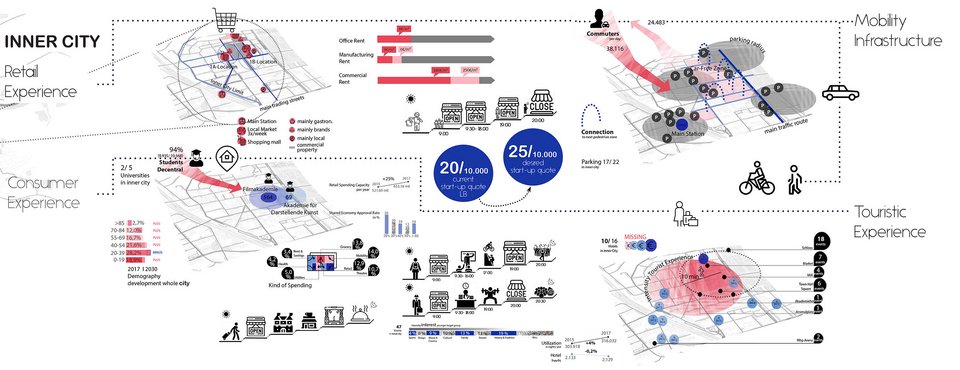 To make Ludwigsburg a smarter and more sustainable city, a Living Lab environment is suggested for the inner-city to enhance innovation and entrepreneurship while focusing on social benefits. The project identified and studied areas of opportunities for alternative mobility services to support innovative businesses achieving decarbonization of the city. A new integrated street festival experience is proposed, where activities for different generations and audiences are offered. In this seasonal public space experience, various interest groups are attracted through tactical urbanism and creating opportunities for new partnerships.