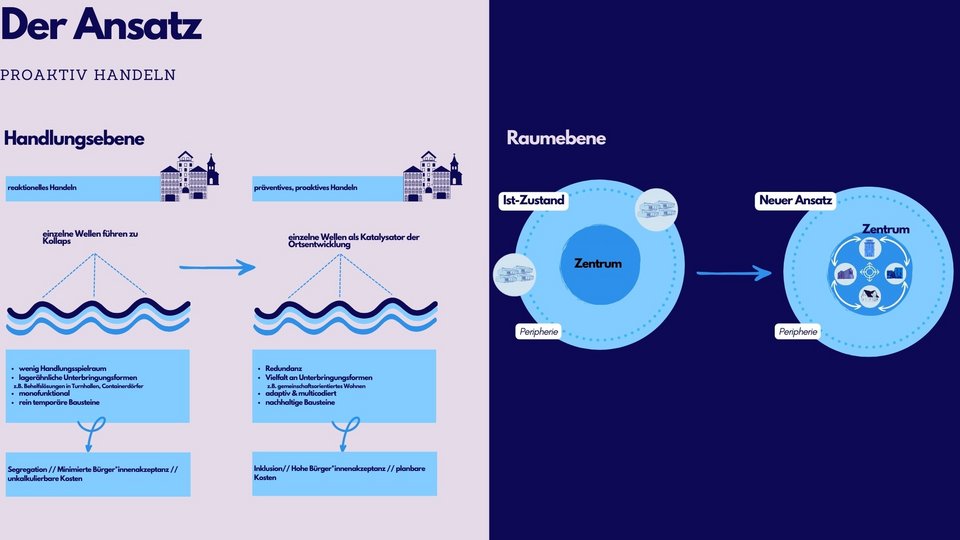The accommodation and inclusion of refugees is a challenge for municipalities that goes far beyond a short-term emergency measure. It is time to consider this issue as an integral part of long-term and holistic urban development. The Master Thesis "Just a wave? | Refugee accommodation as part of long-term urban development - coping strategies for municipalities in rural areas to accommodate refugees" therefore takes a close look at historical and current refugee movements and accommodation strategies in Germany and shows a new way forward by means of a practical brochure.