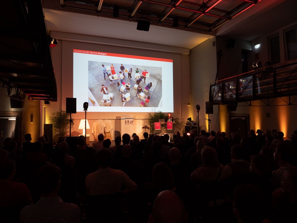 "Change your perspective with us and broaden your horizon!" was an invitation in a news message of the M4_LAB to participate in said finissage. The approximately 190 participants of the "M4_LAB_FINISSAGE" on October 26, 2022 at the Stuttgart University of Applied Sciences (HFT Stuttgart) were able to accomplish such a change of perspective. Basically, the event was a mixture of a retrospective of the participants' own transfer work, paired with a look ahead. The focus was on the city of the future and the major topics of resources and digitalization as well as urban development, mobility and transformation. A multimedia exhibition, flanked by expert presentations, allowed visitors to immerse themselves in the future of the city.